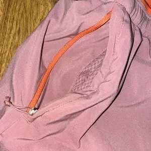 Stylish mauve shorts with rust drawstring. Ideal for active or casual wear.