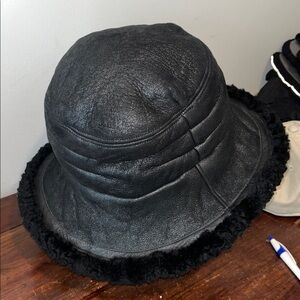 UGG® Tasman Stitch Genuine Lamb Shearling Bucket Tall Hat UGG Black Suede OSFA