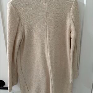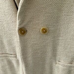 Stylish cream jacket with textured design. Features a classic collar and tailored fit. Great for fall