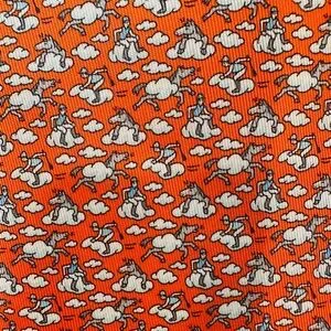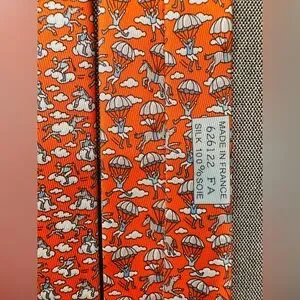 Add a touch of luxury to your wardrobe with this authentic Hermès Paris tie. Crafted in France from 100% silk, this vibrant orange tie features a whimsical design of jockeys and horses riding through the clouds — a signature Hermès blend of imagination and elegance. Perfect for collectors, fashion connoisseurs, or anyone looking to elevate their outfit with a bold statement piece.