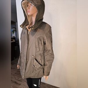 Collectionb New York Women’s Parka Jacket size L, Olive Green, Drawstring Waist