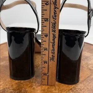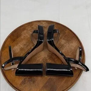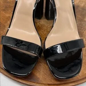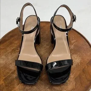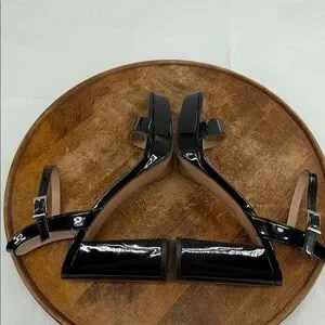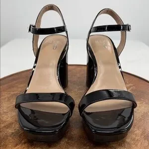 Mix No 6 Shoes Wm 8.5 Wide Sundra Black Faux Patent Leather Sandals Block Heel