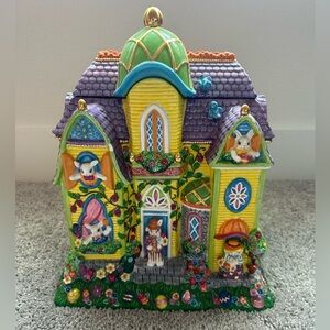 Rare Retired Christopher Radko Easter Bunny Rabbit Centerpiece Cookie Jar VTG