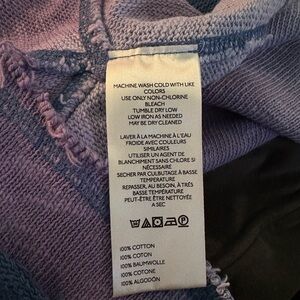 Features: Washed cotton jersey fabrication, off-the-shoulder neckline, notched detail, raw hems, wide drop-shoulder short sleeves, ombre print