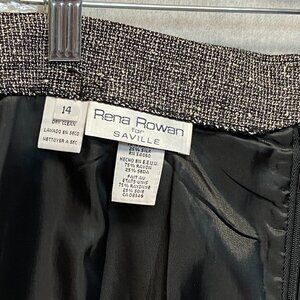 Rena Rowan for Saville Silk Blend Tweed Pleated Lined Pencil Skirt Black White