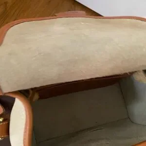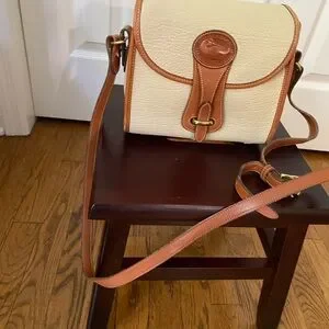 Discover elegance with this vintage bone and tan leather crossbody bag. Perfect for adding a touch of sophistication to any outfit. Made in the USA of all weather leather a
