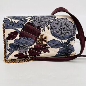 Tory Burch Kira Chevron Chain Wallet Floral Print Leather Crossbody Bag Small