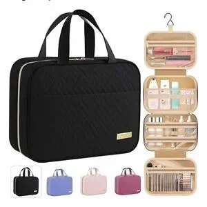 Stay organized on the go with this Black Travel Makeup Bag. This stylish accessory is perfect for keeping your essentials in order. This bag is new and has never been used.
