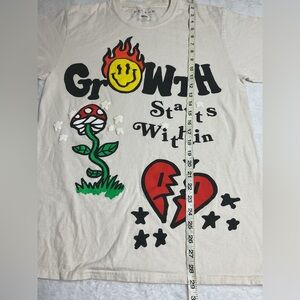 Fun graphic tee with bold designs. Features playful text and colorful illustrations. Ideal for casual wear. Perfect condition