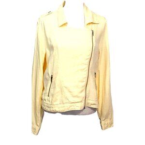 Maurices Moto Jacket M Yellow Linen Blend Asymmetric Zip Casual Lightweight
