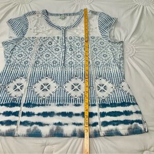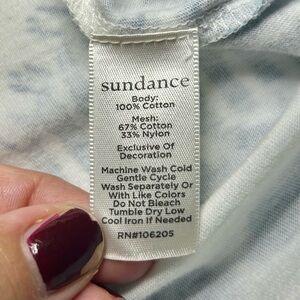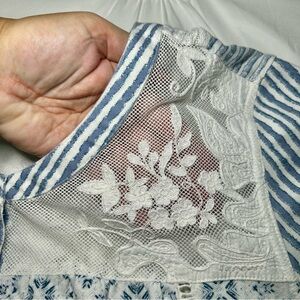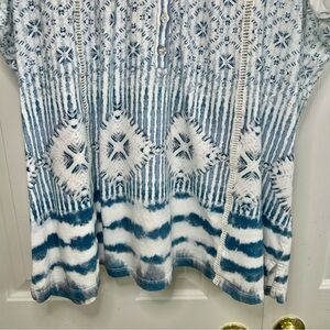 Sundance Blue & White Sheer Embroidered Bohemian Coastal Blouse Top Sz XXL