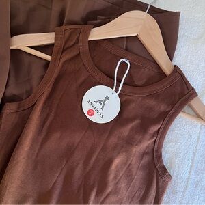 NWT sleeveless brown maxi dress features pockets and ruffle hemline in rich chocolate brown color. Size medium and top part has stretch. 🐻🍂☕️