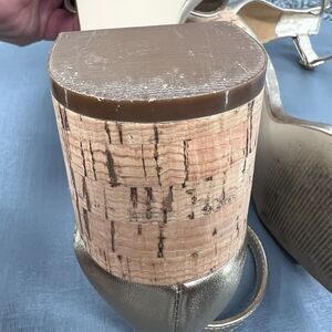 Lilly Pulitzer Tilly Sandal metallic gold Leather Cork Heel Ankle Strap Gold 7.5