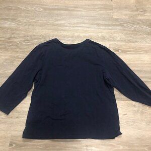 Laura Ashley Women Size XL Navy Blue Top 3/4 Sleeve Shirt Cottagecore Peasant