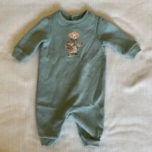 Ralph Lauren Blue Kids One Piece with Bear Embroidery