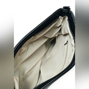 New without tags! Medium to large size black faux leather Crossbody Bag Purse. Stylish flowy Fringe with pewter studs and goth cross metal emblem detail. Adjustable strap with zip closure. 1 interior zip pocket with light fabric lining. Perfect for Halloween, fall and goth looks!