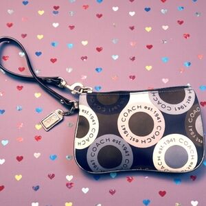 Stylish Coach wristlet in a chic blue and gray design. Perfect for carrying essentials with elegance.