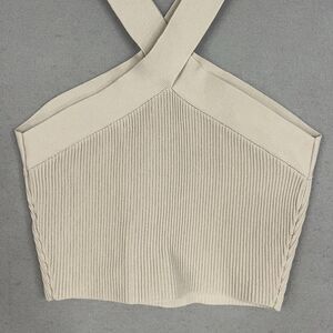 Item: Womens ribbed knit criss cross cropped tank/top with halter-style crossed straps