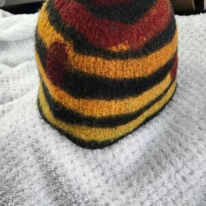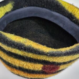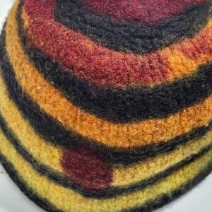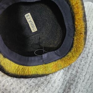 Wool hand-felted hat with a black and yellow pattern, OH hats. natural colors very unique touch fairy colorful