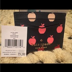 Brand New Never Used Kate Spade apple print card holder slim wallet