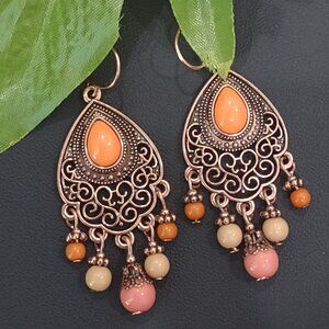 NWT. Beautiful Bohemian Drop Earrings with intricate metal work. Antique Copper & Teardrop Beads. Measure approximately 2.3” x .8”. Gift box included.
