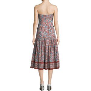 Veronica Beard 'Fiore' Strapless Linen-Blend Midi-Dress, Clay Multi