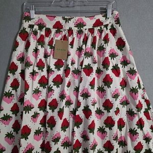 NWT Boden Womens Layla Cotton Sateen Ivory Strawberry Pop Skirt Size 6, use photos for measurements, brand new with tags, never worn, cotton and elastane, 2 high hip pockets, slight stretch, free of stains and holes, smoke free home