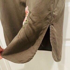 Miss Me Shirt Dress Women's Sz. Small Button Down Olive Green Floral Embroidery