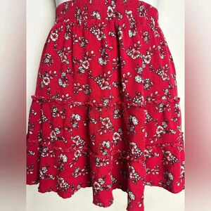 Abby Paris Red Floral Challis Ruffle Mini Skirt