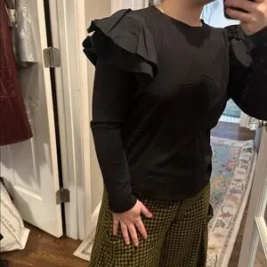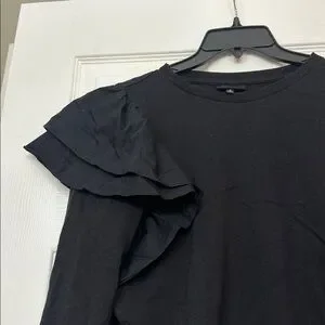 Super comfy with fun shoulder flutter. 100% cotton. Perfect condition