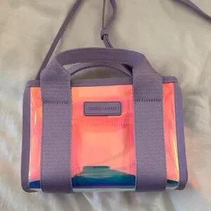 Chic crossbody bag with iridescent flair. Stylish pink and purple hues. Perfect for any outing.