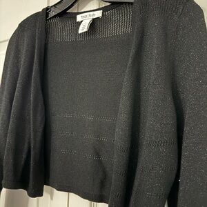 Chic sparkly black shrug from White House Black Market. Lightweight and stylish. Ideal for layering. Perfect when you want to dress up an outfit or even New Year’s Eve!