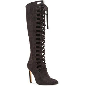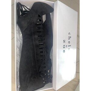 Chelsea & Zoe Pauline Lace-Up Boots in Black Microfiber 10 New with Box Womens