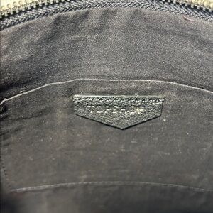 Black leather/faux leather clutch that has strap to make it a crossbody. Everything is in mint shape, except for slight discoloration at top of chain- But then just use it as a clutch!