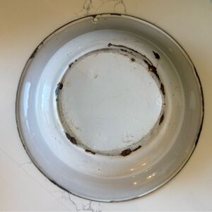 Add a touch of vintage charm to your home with this antique white and black enamelware pitcher and basin set from the early 1900’s.