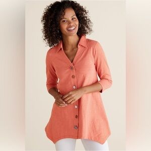 Soft Surroundings Coral Danielle Button Top Size Medium