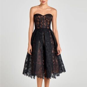 NADINE MERABI Black Strapless Lace Dress