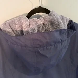 Stylish navy hooded jacket with zip closure. Perfect for casual wear.