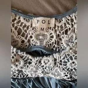 POL Womens Tunic. Lace Embroidered. Sheer Hi-Low Boho