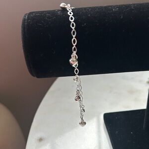 This elegant 925 Sterling silver ankle bracelet features delicate heart charms, perfect for adding a touch of sophistication to any outfit.