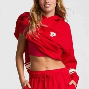 Pink by Victoria Secret Ivy Fleece Campus Hoodie Bright Vermillion, Size XS