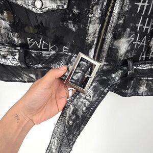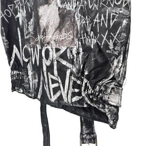 Embrace unique style with this one-of-a-kind Dust Of Gods leather vest. Each vest is a masterpiece of art, meticulously handcrafted and tailored to ensure exclusivity and individuality. Featuring a stylish belted design, this vest stands out with its bold artistic expressions and intentional imperfections, highlighting the vest’s unique character.
