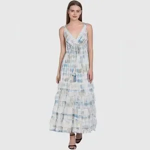 Be cruise ready with this elegant blue and white Tie-dye maxi dress.