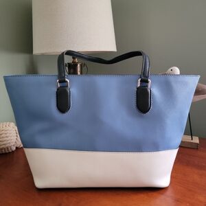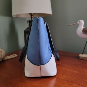 Kate Spade Laurel Way Dally Tote Blue White Black Crossgrain Leather Purse