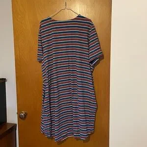 Stylish striped dress by Terra & Sky. Features vibrant multicolor pattern. Comfortable.