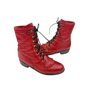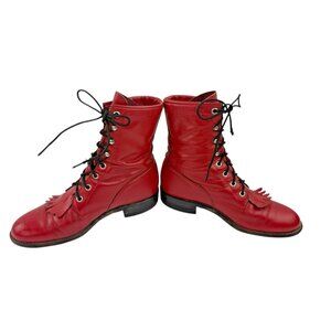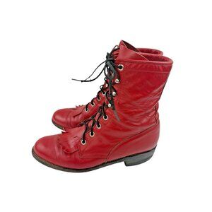 Justin Kiltie Tassle Boots Womens 6.5 Red Leather Western Cowgirl Heritage Lacer
