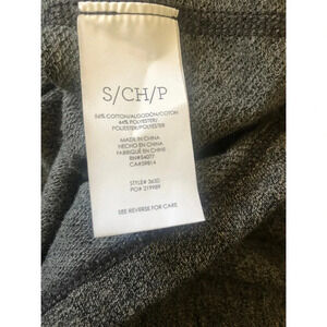 Solid heathered gray knit with a crew neck and long sleeves, accented with an asymmetrical pleat tuck at the waist to highlight your figure. (gathered ruched detail at the side.)