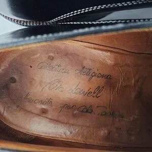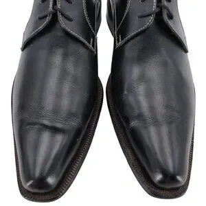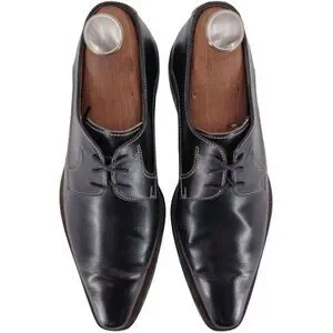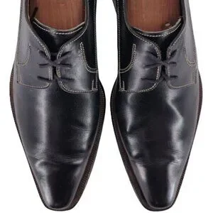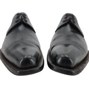 Authentic vintage Italian McDowell dress shoes in black leather. Ideal for formal occasions, these shoes feature a classic derby oxford design and a comfortable fit. Perfect for the discerning gentleman seeking timeless style.