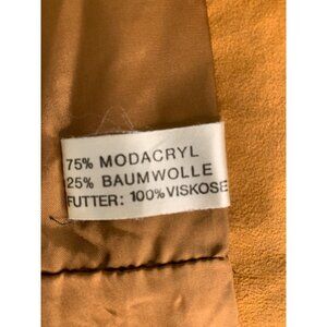 This vintage 1980s faux fur coat offers a luxurious and warm design, featuring a mid-length cut and a classic style. The coat includes three hook closures and round hand pockets for added functionality. Crafted with quality modacryl and cotton, it is both stylish and comfortable, ideal for cooler seasons.