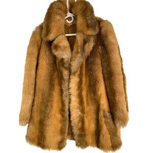 Vintage 80s Womens Faux Fur Mid-Length Coat Size 8 RO10553